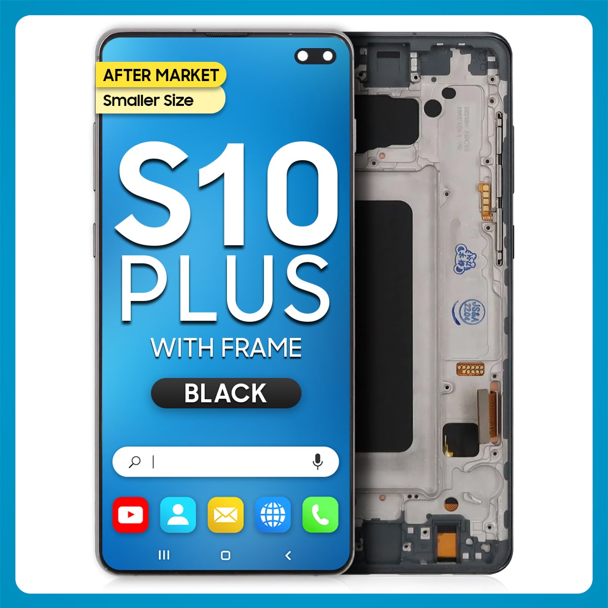 The Samsung S10 Plus LCD with Touch + Frame Prism Black (Refurbished) is a trademark owned by Samsung Inc., registered in the United States and other jurisdictions.