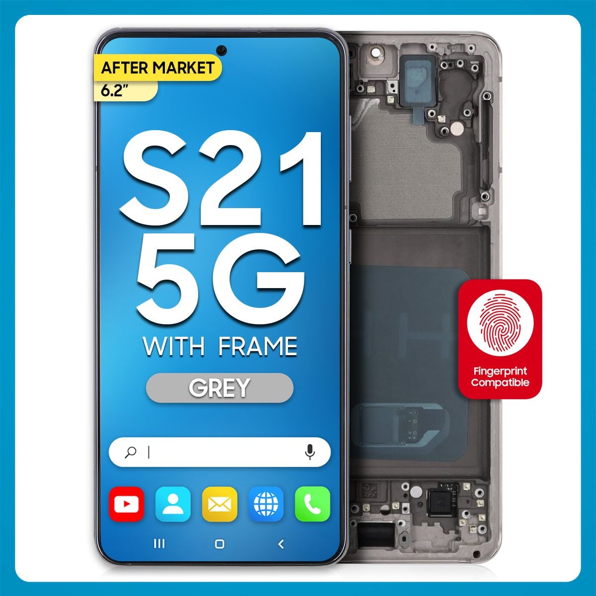 The Samsung S21 5G LCD with Touch + Frame After Market Phantom Grey (BIG SIZE) 6.2' is a trademark owned by Samsung Inc., registered in the United States and other jurisdictions.