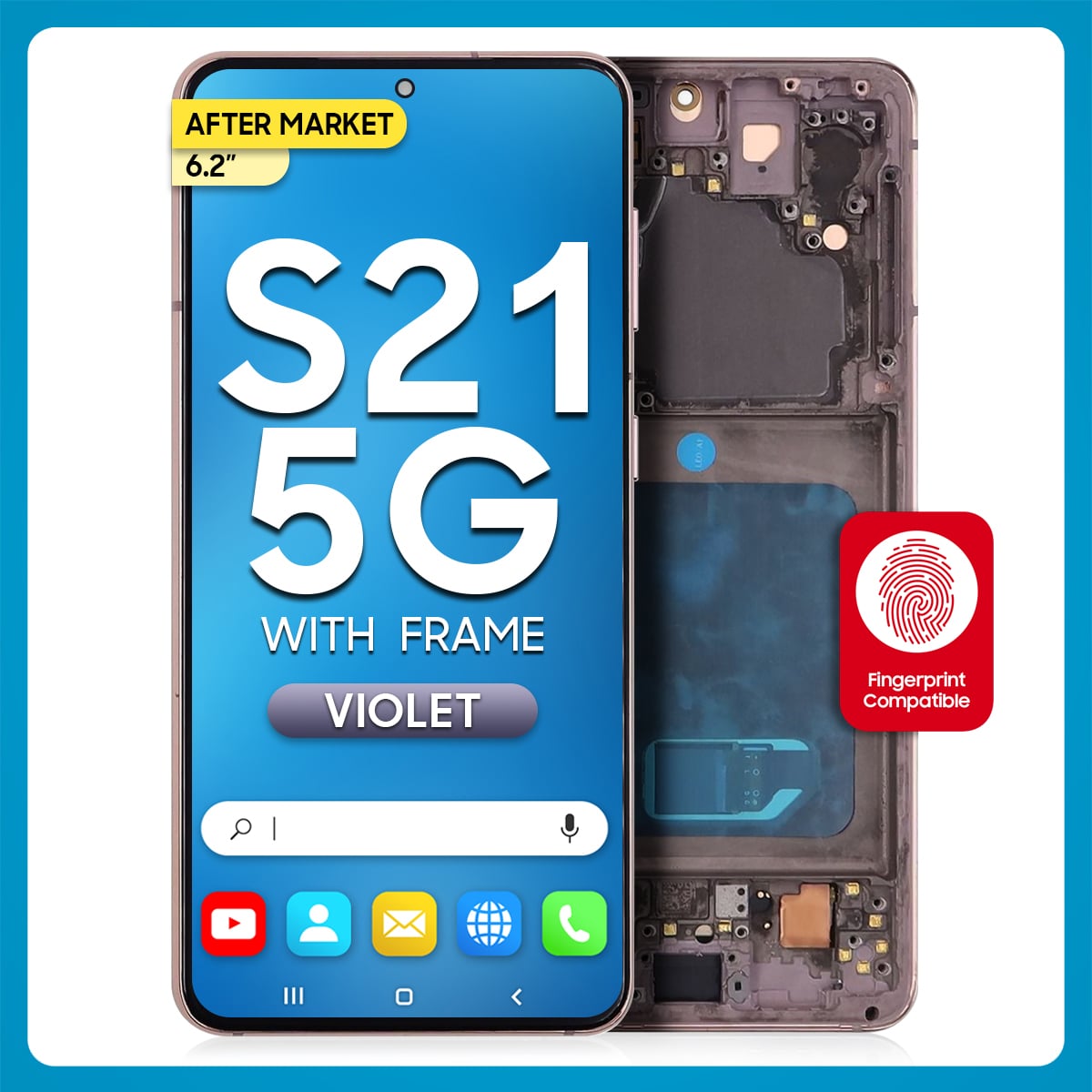 The Samsung S21 5G LCD with Touch + Frame Phantom Pink (Refurbished) is a trademark owned by Samsung Inc., registered in the United States and other jurisdictions.