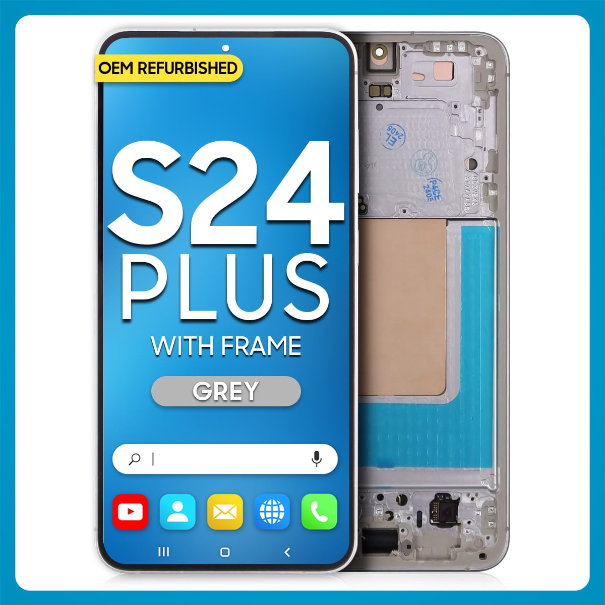 The Samsung S24 LCD with Touch + Frame Grey (Refurbished) is a trademark owned by Samsung Inc., registered in the United States and other jurisdictions.