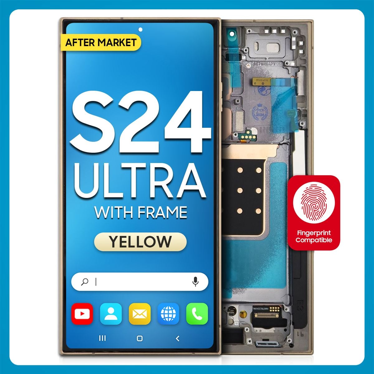 The Samsung S24 Ultra LCD with Touch + Frame After Market Titanium Yellow is a trademark owned by Samsung Inc., registered in the United States and other jurisdictions.