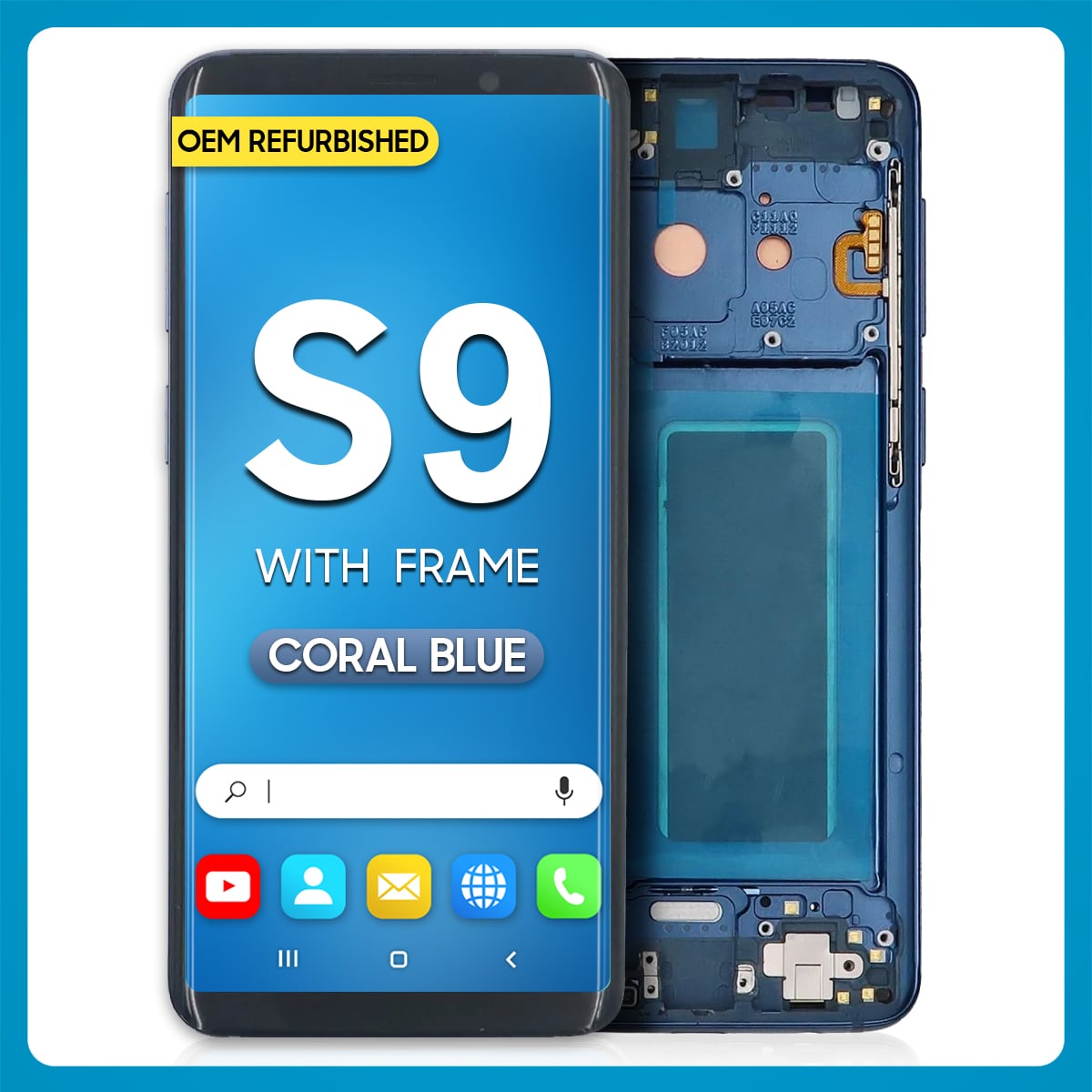 The Samsung S9 LCD With Touch + Frame Black (Refurbished) is a trademark owned by Samsung Inc., registered in the United States and other jurisdictions.